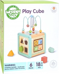 Drevená aktívna kocka WOOPIE GREEN v jemných pastelových farbách kombinuje zábavu a učenie v jednom. Ponúka labyrint s korálikmi, tvarový sorter, otáčacie bloky so zvieratkami, ozubené kolieska a posuvné prvky pre rozvoj jemnej motoriky, logického myslenia a koordinácie. Bezpečné prevedenie s hladkými hranami a kvalitným drevom je ideálnou voľbou pre deti od 18 mesiacov aj ako skvelý darček.