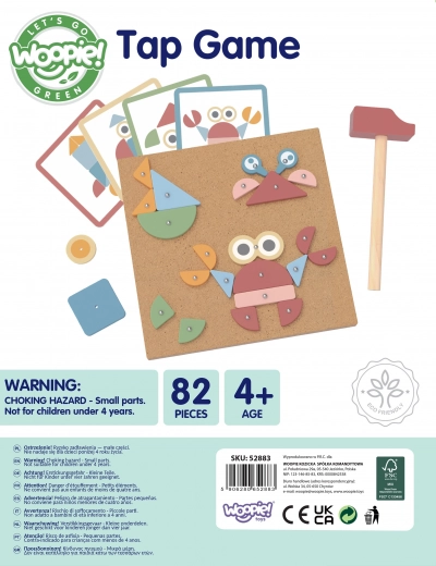 Objavte kreatívnu vzdelávaciu hru, ktorá deti vtiahne do sveta tvarov a farieb. Drevená pribíjačka WOOPIE GREEN umožňuje skladať obrázky podľa predlôh aj tvoriť vlastné kompozície. Vďaka bezpečným, zaobleným prvkom a robustnej korkovej doske je hra zábavná aj odolná.