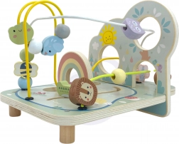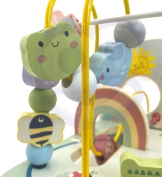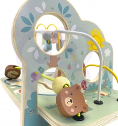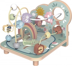 Lesné korálkové bludisko z masívneho dreva zaujme kvalitným spracovaním, pastelovými farbami a milými ilustráciami zvieratiek, dúhy a slniečka. Deti posúvajú korálky a tvary po troch kľukatých dráhach, trénujú presnosť pohybu prstov a sústredenie a zažívajú radosť z dokončenia trasy.