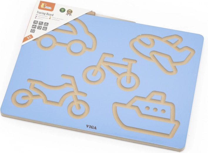 Objavte zábavnú cestu k prvým ťahom a písmám. Drevená tabuľka VIGA s motívmi vozidiel vedie deti k plynulým pohybom ruky, správnemu tlaku a smeru ťahu. Tréning prebieha prirodzene hrou – opakované obťahovanie drážok podporuje sústredenie a istotu v ruke.