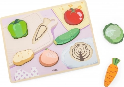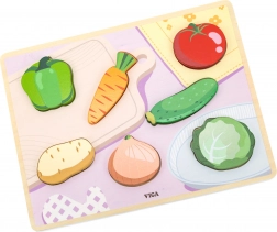 Drevená vkladačka VIGA so 7 dielikmi v tvare obľúbenej zeleniny (paprika, paradajka, mrkva, uhorka, zemiak, kapusta a cibuľa) ponúka ideálnu kombináciu učenia a hry. Deti trénujú rozpoznávanie tvarov a farieb, precvičujú priraďovanie a zábavnou formou posilňujú pamäť aj sústredenie.