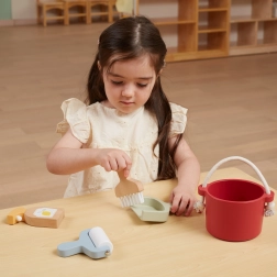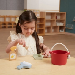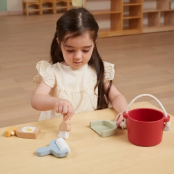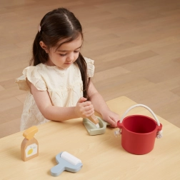 V balení nájdete vedro, metličku so špachtľou, drevený rozprašovač a valček – všetko, čo dieťa potrebuje na „veľké upratovanie“. Podporuje fantáziu a rolovú hru.