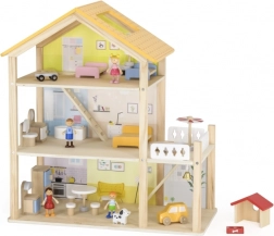 Súčasťou je 32 prvkov: nábytok do kuchyne, obývačky, kúpeľne, spálne aj detskej izby, 4 figúrky a psík.