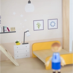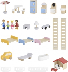 Vďaka robustnej drevenej konštrukcii a hladkým hranám je hra bezpečná a príjemná. Až 32 prvkov rozvíja predstavivosť, jemnú motoriku aj sociálne zručnosti. Ideálne pre bábiky do 10 cm.
