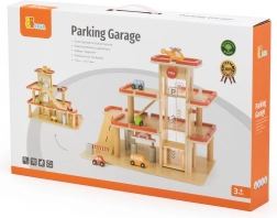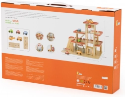 Objavte drevenú parkovaciu garáž VIGA pre deti od 3 rokov – robustnú trojposchodovú sadu s ručným výťahom, umyvárkou a heliportom. Súčasťou sú 4 autíčka a vrtuľník, realistické detaily a odolné drevené prevedenie pre kreatívnu hru a rozvoj jemnej motoriky.