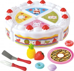 Súčasťou sú tiež ovocie a sladkosti, ktoré možno krájať, čo prirodzene rozvíja jemnú motoriku, koordináciu oko–ruka a podporuje predstavivosť. Skvelé na samostatnú aj spoločenskú hru s kamarátmi či súrodencami.
