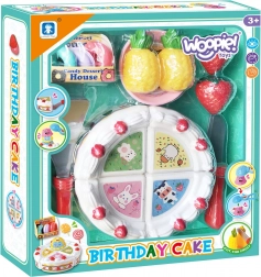 Detská sada Woopie s tortou, ovocím a sladkosťami na krájanie prináša hodiny kreatívnej hry. Deti môžu pripraviť narodeninovú hostinu, porciovať krájaciu tortu a servírovať pomocou príslušenstva. Podporuje rozvoj jemnej motoriky a hru na role už od 3 rokov.