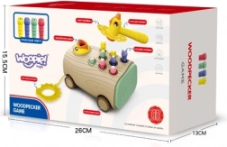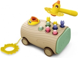 Objavte zábavnú a všestrannú hračku 3v1 od značky WOOPIE, ktorá podporuje jemnú motoriku, koordináciu oko–ruka a rovnováhu. Deti si užijú ťahací vozík s tichými kolieskami, zatĺkaciu hru s bezpečným kladivkom aj magnetickú hru na chytanie červíkov s roztomilým „ďatľom“ – drevoklepom. Jednoduché pravidlá, kvalitné spracovanie a kopec zábavy pre malých objaviteľov od 18 mesiacov.