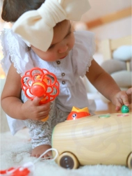 Jeden produkt, tri aktivity: ťahací vozík pre prvé krôčiky, zatĺkanie na tréning sily a presnosti a magnetická hra pre šikovnosť a sústredenie.