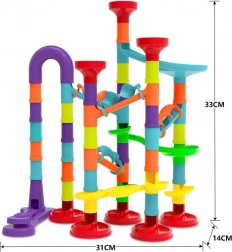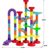 Kreatívna stavebnica guľôčkovej dráhy WOOPIE je ideálnou hračkou pre zvedavé deti. Vďaka pestrým farbám a rôznym tvarom rúrok, lievikov a zákrut deti ľahko zostavia vlastné originálne trate a sledujú, ako guľôčky svištia jedna za druhou.