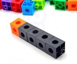 Matematická stavebnica umožňuje jednoduché spájanie kociek, čo robí proces učenia a tvorenia zábavným a prístupným pre deti.