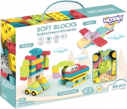 Stavebnica WOOPIE obsahuje 86 dielov, ktoré sa ľahko spoja a umožnia deťom vytvárať rôzne 3D konštrukcie ako autá, lietadlá alebo zvieratká. Kocky sú veľké a mäkké, čo zabezpečuje ich bezpečnosť pri hre, a možno ich vyvárať pri 120 stupňoch pre jednoduchú údržbu.