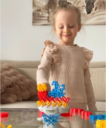 Užite si hodiny zábavy s hrou Balansujúce Zvieratká, ktorá je ideálna ako pre jednotlivcov, tak pre dvojicu hráčov. Hra je navrhnutá tak, aby rozvíjala logické myslenie a učila deti sústredeniu. Cieľom je umiestniť čo najviac zvieratiek na balansujúci kameň, bez toho aby sa stavba zrútila. Vyskúšajte rôzne úrovne obtiažnosti - od stabilného podstavca až po otočný, ktorý sa pohybuje o 360 stupňov.