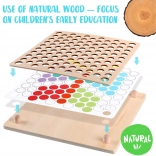 Woopie farebné gule ponúkajú hodiny zábavy pre deti. Sada obsahuje drevenú dosku a šablóny, kde deti môžu tvoriť vlastné vzory alebo skladačky. Farebné formy pomáhajú zoradiť gule a podporujú sústredenie a vizuálno-motorickú koordináciu.
