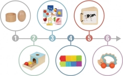 Montessori krabica od Tooky Toy je navrhnutá pre deti vo veku 7-8 mesiacov a ponúka rodičom a deťom skvelý spôsob, ako podporiť ich vývoj. Krabica obsahuje 6 rôznych hračiek, ktoré stimulujú zmysly, pomáhajú zlepšiť koordináciu a podporujú logické myslenie.