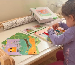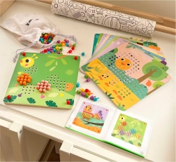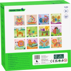 Táto úchvatná mozaika je navrhnutá pre deti od 3 rokov a obsahuje 10 tabuliek so šablónami a 222 farebných kolíkov. Obsahuje tiež materiálový sáčok pre ukladanie všetkých dielikov.