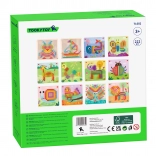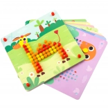 Drevená mozaika s farebnými kolíkmi a veselými obrázkami prináša deťom veľa radosti a podporuje ich kreatívny rozvoj.