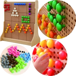 Kolíky je možné ľahko namontovať na tabuľu STEM, čo deťom pomáha pri rozvoji ich zručností a predstavivosti.