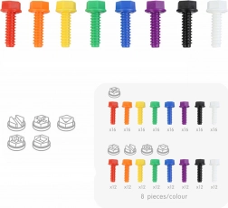 - 512 kusov farebných skrutiek v ôsmich farbách
