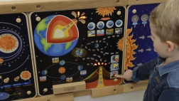 Vďaka pohyblivým prvkom a svetelným efektom sa deti môžu ľahko naučiť o vonkajšej aj vnútornej štruktúre Zeme.