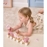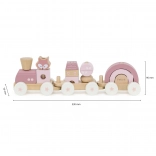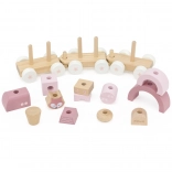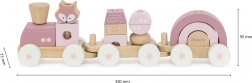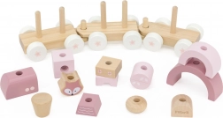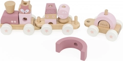 Roztomilý ružový drevený vláčik zo série PolarB od značky Viga poteší každé dieťa. Skladá sa z 3 vagónov a 14 kociek rôznych tvarov, ktoré možno voľne kombinovať a ukladať. Vďaka jemným pastelovým farbám, bezpečnému drevenému spracovaniu a príjemným tvarom je ideálny na rozvoj jemnej motoriky, koordinácie a kreativity už od 18 mesiacov.
