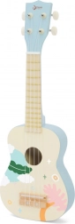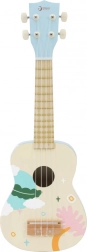Toto modré drevené ukulele skvele napodobňuje skutočný nástroj a je ideálne na prvé krôčiky do sveta hudby. Deti si osvoja základné akordy a rytmus, môžu si zahrať svoj prvý domáci koncert a pritom si rozvíjať cit pre hudbu aj sebavyjadrenie. Povrch je lakovaný netoxickými farbami a konštrukcia je z trvácnych materiálov pre dlhú životnosť.