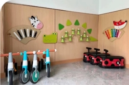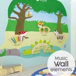 Nástenný dizajn šetrí miesto a vytvára atraktívnu zónu pre spoločnú hru a rozvoj hudobnej výchovy.