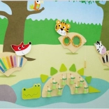 Hudobná tabuľa Líška CLASSIC WORLD je pútavý nástenný prvok s farebným xylofónom a perkusnými aktivitami, ktorý deti prirodzene vedie k objavovaniu zvukov, rytmu a prvých melódií. Ideálne do materských škôl, herných zón aj domácich detských izieb – šetrí miesto, je bezpečná a vždy pripravená na hranie.
