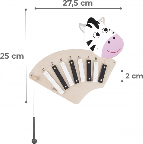 Detská nástenná hudobná tabuľa v tvare zebry od značky CLASSIC WORLD premení každý pokoj či triedu na malé hudobné štúdio. Podnecuje deti k experimentovaniu s hudbou, rozvíja sluchové vnímanie, rytmus aj jemnú motoriku. Vyrobená z kvalitného dreva, s netoxickými povrchovými úpravami a jednoduchou montážou na stenu – ideálna do škôlok, herničiek aj domova.