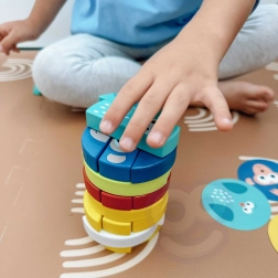 Táto chytľavá rodinná hra kombinuje balancovanie, triedenie farieb a spoznávanie zvieratiek. Veža z pestrofarebných drevených dielikov láka k opatrnému vyťahovaniu a trénuje oko–ruka koordináciu, sústredenie a spoluprácu detí. Ideálne na spoločné hranie súrodencov aj kamarátov.