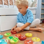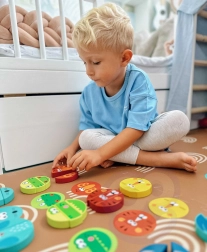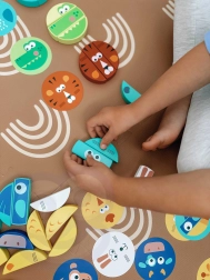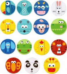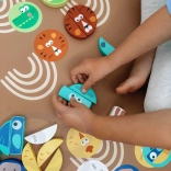 Súčasťou sady sú karty zvierat a farebná kocka, ktoré určujú, aký dielik má hráč vytiahnuť. Kvalitné drevené prevedenie, hladké hrany a ekologické, bezpečné farby zaručujú príjemné a bezpečné hranie. Hra zároveň podporuje učenie farieb, počítanie aj trpezlivosť.