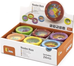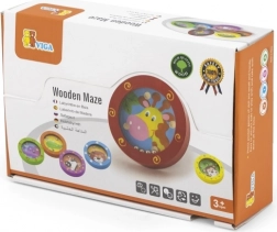Drevený labyrint VIGA je zábavná vrecková hra pre deti, ktorá spája radosť z objavovania s rozvojom zručností. Dieťa nakláňaním presúva kovové guličky do správnych otvorov podľa obrázka zvieratka, čím si precvičuje logické myslenie, trpezlivosť a presnosť pohybov.