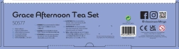 Sada obsahuje veľký tác, tanieriky pod šálky, čajník, šálky, lyžičky a dezerty.