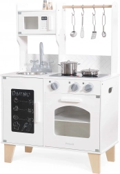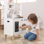 Táto drevená kuchynka ponúka realistické prvky ako rúra, sporák a mikrovlnná rúra, ktoré umožňujú hodiny zábavného varenia.