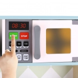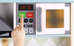 Kuchynka obsahuje sporák, rúru, mikrovlnku a ďalšie praktické prvky, ktoré simulujú skutočné varenie.