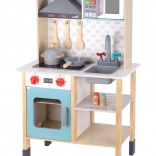 Táto krásna drevená kuchynka disponuje širokou škálou funkcií, ako sú sporák, rúra, mikrovlnka a nástenka, na ktorú môžu deti kresliť. Kuchynka je vyrobená z vysokokvalitných materiálov a je určená pre deti od 3 rokov.
