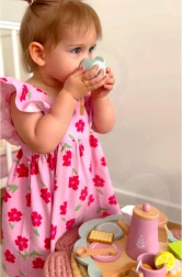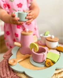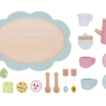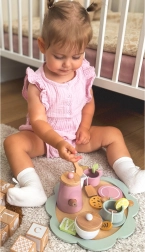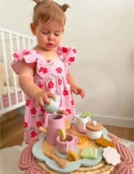 Čajový set je ideálny pre deti, ktoré sa rady hrajú na popoludňajšie čajové posedenia. Súprava je vyrobená z kvalitného dreva a skladá sa z rôznofarebných komponentov, ktoré lákajú k hre.