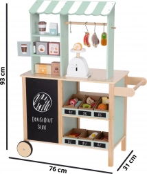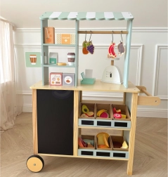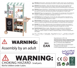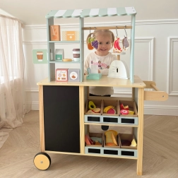 Drevený obchod WOOPIE GREEN je ideálna hračka pre deti, ktoré sa učia sociálne, matematické a organizačné zručnosti prostredníctvom hrania rolí. Obsahuje 73 prvkov, vrátane váhy, potravinových výrobkov, čítačky kariet a tabule na kriedu pre poznámky. Toto všetko je vyrobené z bezpečného dreva a maľované netoxickými farbami.