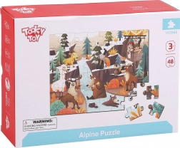 Puzzle Tooky Toy Alpy - Zvieratá a krajina je skvelý darček pre deti. Obsahuje 49 dielikov, ktoré pomáhajú spoznávať zvieratá a rastliny alpskej krajiny. Perfektné ako prvé puzzle pre vaše dieťa.
