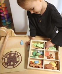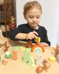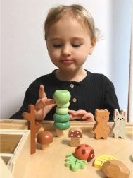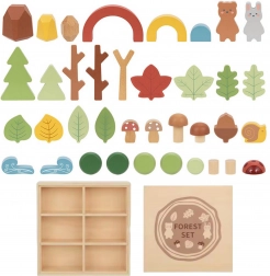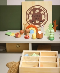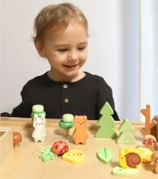 Drevená Lesná sada od Tooky Toy navrhnutá pre kreatívnu zábavu detí. Obsahuje rôzne lesné prvky, ktoré umožňujú triedenie, stohovanie a stavanie, podporujúce vytváranie unikátneho lesného prostredia.