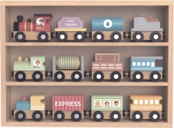 Po skončení hrania možno vláčiky a vagóniky uložiť do kvalitnej drevenej krabice, ktorá je súčasťou balenia, čo zaisťuje jednoduchý prehľad a skladovanie.