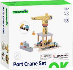 Objavte fascinujúci svet dopravy s drevenou sadou prístavného žeriavu od Tooky Toy! Táto precízne spracovaná hračka prenesie deti do stredu prístavného ruchu, kde môžu manipulovať s kontajnermi za pomoci veľkého otočného žeriavu, a prepravovať náklady pomocou vlaku, kamiónov a lodí. Sada je farebná, trvanlivá a detailne prepracovaná, čo zaisťuje hodiny kreatívnej zábavy.