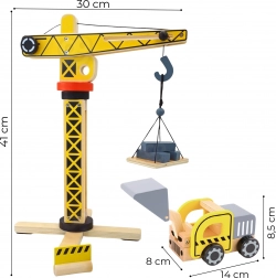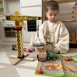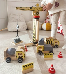 Rozšírený stavebný set od značky WOOPIE GREEN je určený pre malých staviteľov. Tento set obsahuje veľký drevený žeriav, tri stavebné vozidlá a ďalšie príslušenstvo pre realistické stavebné hry.