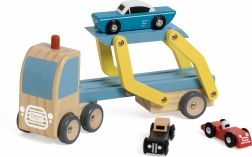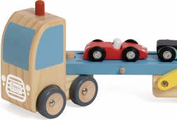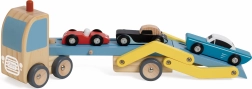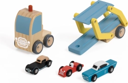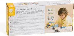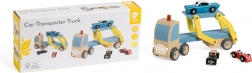 Drevený auto transportér je ideálna hračka pre deti od 18 mesiacov. Tento kvalitný drevený set zahŕňa kamión s nákladom a tri farebné vozidlá, ktoré sa dajú jednoducho nakladať a vykladať.
