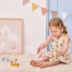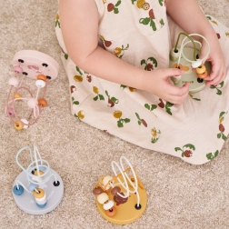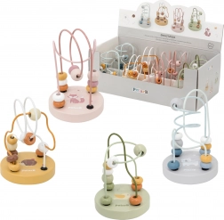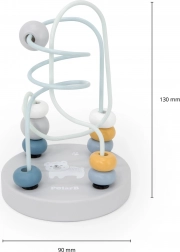 Detské korálkové bludisko s kompaktnou drevenou základňou a hladkými kovovými slučkami ponúka zábavné posúvanie 10 korálikov v dvoch tvaroch. Táto zmyslová aktivita podporuje presnosť pohybov, obratnosť prstov a prvé pokusy o riešenie problémov. Štýlové pastelové odtiene a milé ilustrácie zvieratiek sa hodia do každého detského izbičky.