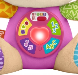 Peť aktívnych tlačidiel na brušku spúšťa pesničky, zvuky a svetelné efekty svietiaceho srdiečka pre zábavné učenie každý deň.