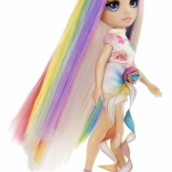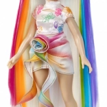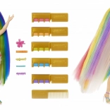 Bábika má mimoriadne dlhé, hladké vlasy s dúhovými pramienkami, ktoré sa ľahko češú, zapletajú a tvarujú do rôznych štýlov – od vĺn cez vrkoče až po výrazné farebné línie.