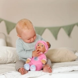 Roztomilý spinkací maznáčik pre najmenších: mäkká plyšová bábika veľkosti 30 cm s hrkálkou, ružovým overalom a čiapočkou. Ideálna na prvé hranie, upokojenie aj rozvoj jemnej motoriky. Mäkučké telíčko, integrovaná hrkálka, ľahučká a ľahko uchopiteľná, prateľná v ruke a vhodná od narodenia.