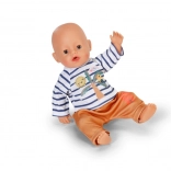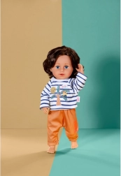 Doprajte svojej bábike alebo medvedíkovi nový svieži outfit, ktorý evokuje leto a bezstarostnú náladu. Pruhované tričko s potlačou palmy a slniečka dopĺňajú oranžové nohavice s pohodlným pásom. Set je vyrobený z príjemných textílií, aby bolo obliekanie aj hranie maximálne komfortné.