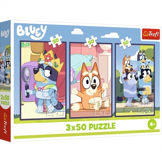 Sada Rodina Bluey obsahuje tri úžasné skladačky, každú s 50 dielikmi. Každá skladačka predstavuje obľúbené postavy z animovanej rozprávky Bluey a po zložení vytvára krásne obrázky o rozmeroch 275x180 mm. Táto varianta puzzle je skvelá pre skupinové skladanie a podporuje tímovú spoluprácu medzi deťmi.